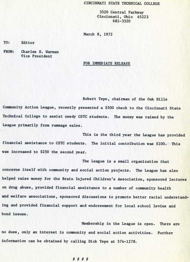 This is the official blog of the archives of Cincinnati State Technical & Community College. The blog will highlight important photos, documents, exhibits, and other items which chronicle the history of Cincinnati State.