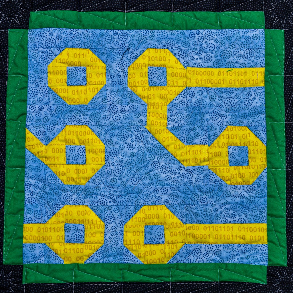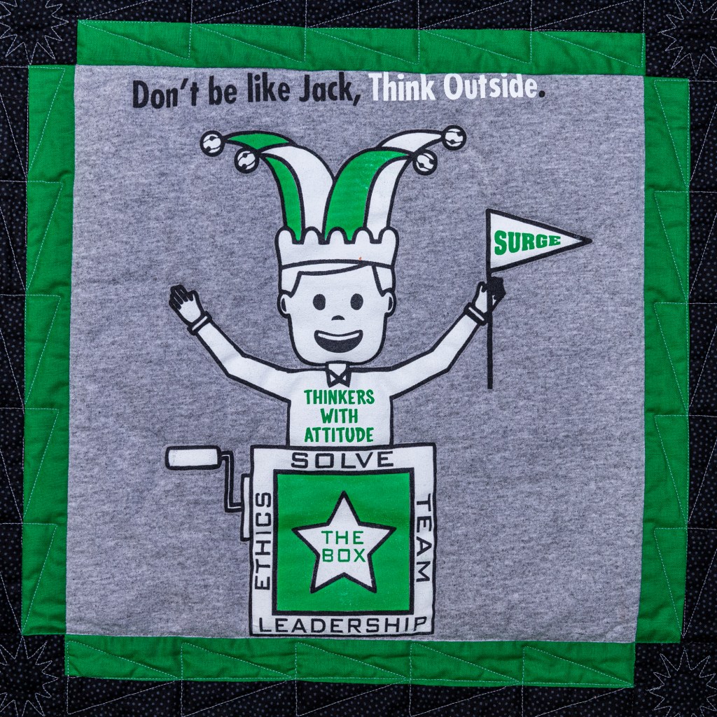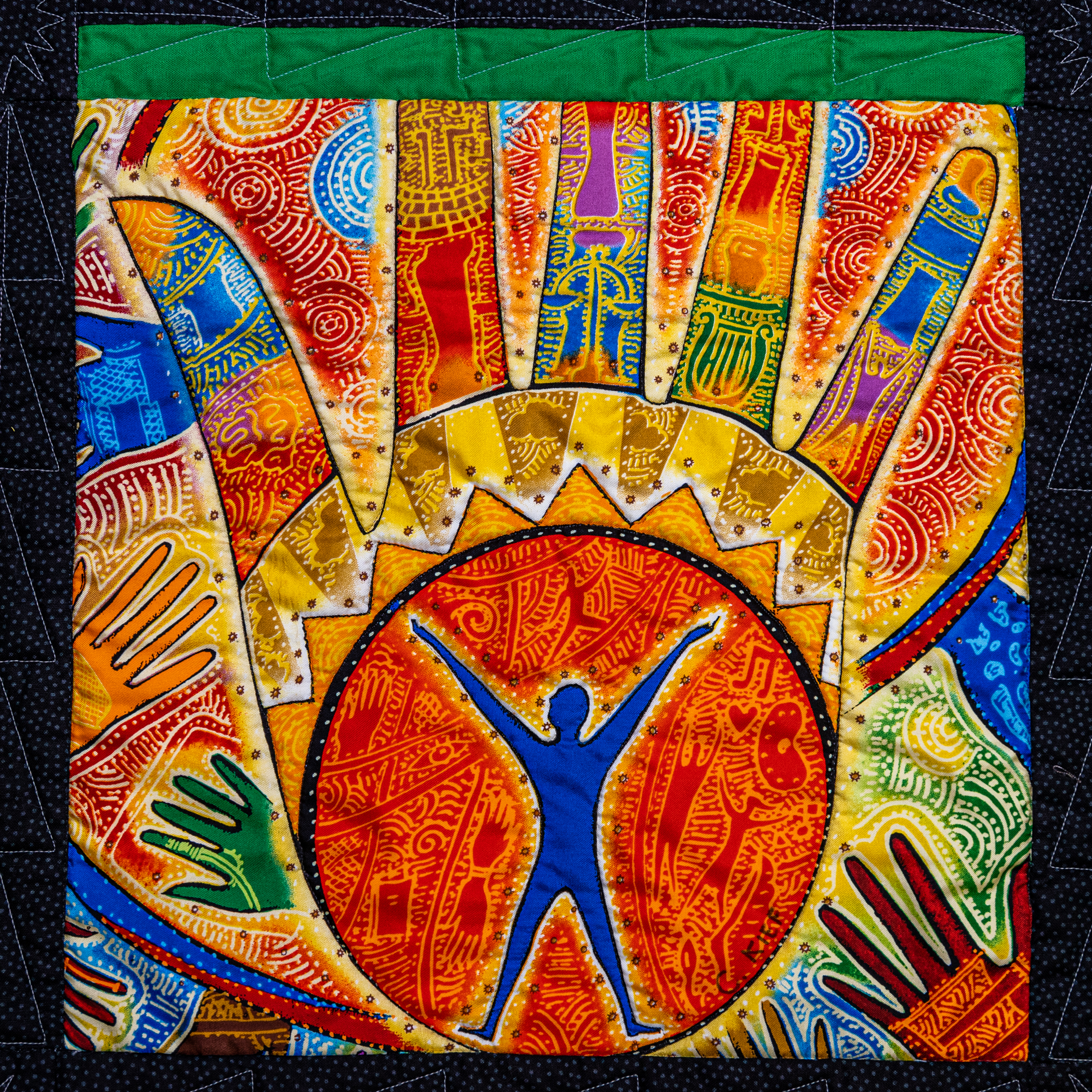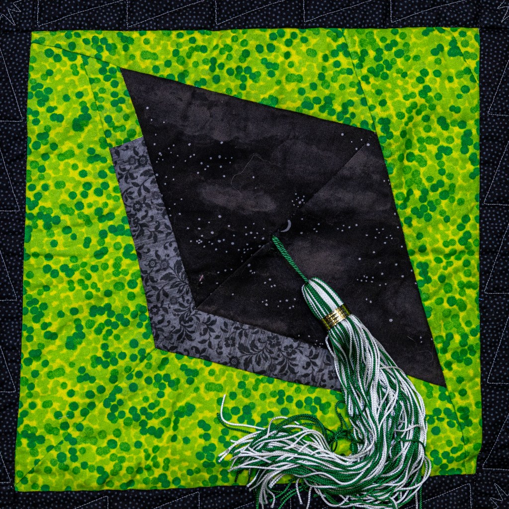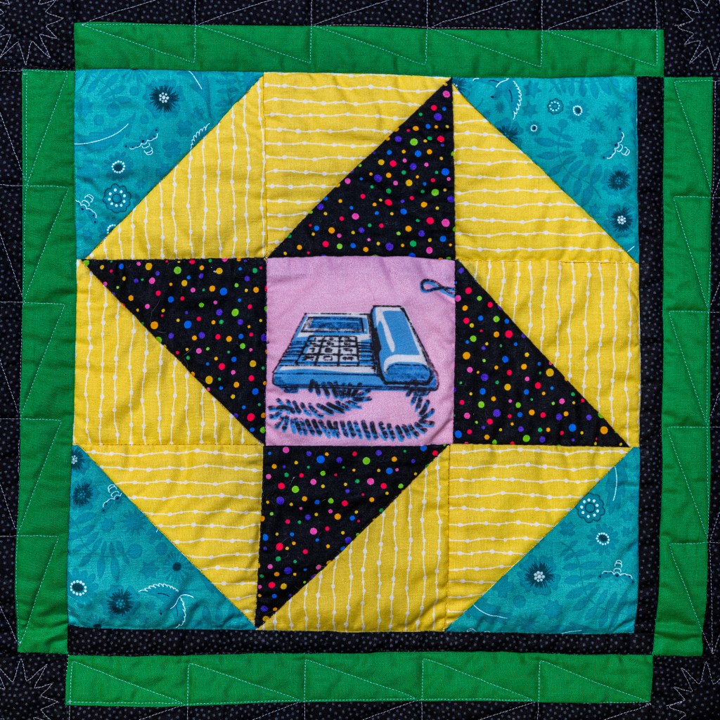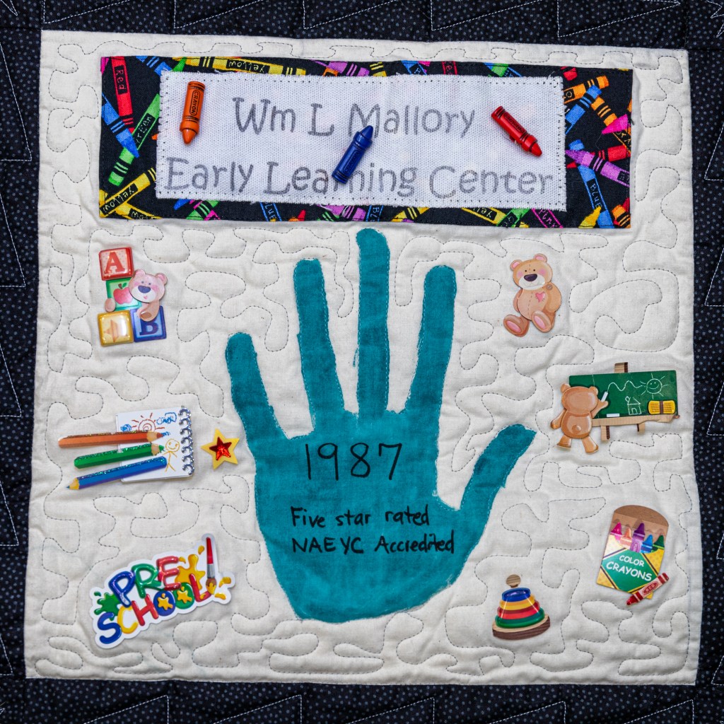 Early Childhood Parent Resource Center created 2019. Made by Sandi OwensEarly Childhood Education Degree Program NAEYC Accreditation 2018. Made by Sandi OwensIt’s a Great Day at Cincinnati State embroidered block. Made by Debbie BogenschutzFounder Tom Stark and His Family of Alumni photograph and embroidery with scientific background fabrics. Designed by his daughter Kristi Stark Drout and made by Debbie BogenschutzA circuit board representing the Engineering Technologies Division. Made by Debbie Bogenschutz who remembers many ET students working on their circuit boards in the Library.2019 Cincinnati State Collegiate Leadership Competition (CLC) Green Team. We were the only two-year college that competed in Cleveland in 2019 and gave all the four-year schools stiff competition. Photograph provided by Julie McLaughlin, Chair. Made by Diane StumpA pieced helicopter representing the Aviation Program. Made by Diane Stump.Photo of the Eileen Berke Occupational Therapy Center with embroidery. Made by Claudia Miller, Chair of the OTA Program.Nursing: Providing Ladders to Success and listing the programs provided. Made by Alice Palmer, retired Program Chair.William H. Mallory Early Learning Center established 1987 and NAEYC accredited. Made by Sandi OwensScience Olympiad 1990-2006 featuring photos of the various competitions. Designed by Peggy Rolfsen and made by Debbie Bogenschutz.The Midwest Culinary Institute logo surrounded by fabrics representing many aspects of the programs. Made by Joyce Rimlinger in consultation with Betsy Lasorella.Photos of the Tutoring Center featuring Debbie Greenlee and various working tutors. Made by Diane Stump.Memories of the Men’s and Women’s Basketball teams with photos, a logo, and basketball fabric. Inspired by Theresa Check former Athletic Director and made by Diane Stump.Flowers and Bees representing the Horticulture Program and our beautiful grounds. Made by Diane Stump.Fabric found by Cindy Kief on a mission trip which represents Occupational Therapy success.Many Facets of the Library with hand embroidery representing both books and technology available through the library. Made by Karen Douglas of the Cincinnati State Library.A pieced Mortar Board with a Cincinnati State tassel representing the success of out mission. Made by Debbie BogenschutzThe Be Great Logo with photos of the Middletown staff and building provided by Tom Hale and Dave Beeman. Made by Joyce RimlingerThe Cincinnati State Library over the years with photos from various moments in time and samples of library handouts as background fabric. Made by Debbie Bogenschutz.Leadership Certificate tee shirt provided by Julie McLaughlin. Block made by Diane StumpThe Accounting Program represented by faculty photos and handouts provided by Yvonne Baker. Assembled by Joyce RimlingerCapitol C made of chemical elements fabric on a background of letters by Gail Hale-Griffin, Financial AidEarth Day tee shirt provided by Ann Gunkle, Chair of the Environmental Technologies Program. Block assembled by Joyce RimlingerAmerican Association of University Professor logos from polo shirts and the newsletter spanning the history of the AAUP. Logos and shirts provided by Pam Ecker; the block was pieced by Joyce RimlingerCincinnati State Middletown Campus Be Great tee shirt logo. Made by Joyce RimlingerSeveral Cincinnati State logos with fabrics representing liberal arts and sciences offerings. Made by Joyce RimlingerCelebrating SO Years made with embroidery on fabric by Debbie Bogenschutz.Cincinnati Cooperative School of Technology, Cincinnati Technical Institute, and Cincinnati Technical College logos provided by Pam Ecker and pieced with “technical” fabric by Joyce RimlingerCincinnati State National Championship Golf team photo with a background of golf fabric made by Diane StumpThe Switchboard our long-time communications hub using a photo and various fabrics. Made by Carolyn LaRose, retired long-time switchboard operator.Cincinnati Technical College: The First Decade by Clifford House is represented in a book block with embroidered title and author. Made by Debbie Bogenschutz.The Financial Aid process featuring the FASFA logo and various fabrics. Made by Destiny Howard of the Financial Aid Office.Cincinnati Police Academy housed on the Cincinnati Technical College Campus from July 31, 1972 to June 25, 1993, using police insignia and embroidery. Made by a friend at the direction of Tom Bauer.The First Year Experience using insignia from several shirts and a photograph of Julie Mclaughlin, Chair, and Diarie Stump, Founder and Chair. Made by Diane Stump
