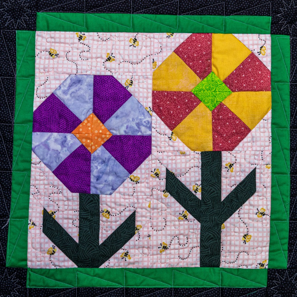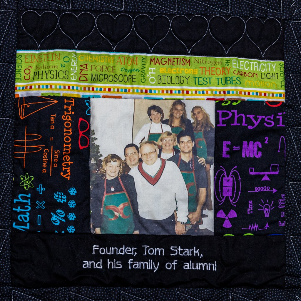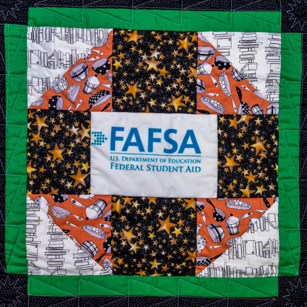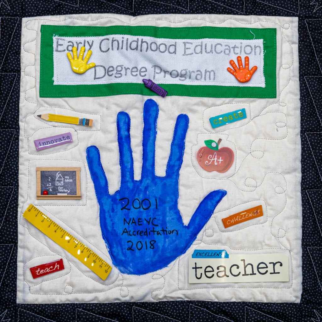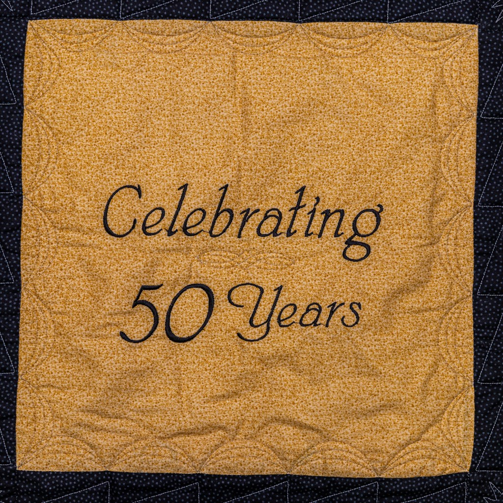 The 50th Anniversary Quilt (see above) was created in honor of the College’ 50th Anniversary in 2019 by many current and former employees. Below are close up pictures of each Quilt block along with a description and who created it.