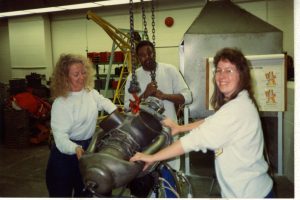 Aviation has traditionally been a male-dominated profession. However, in the mid-1980s, the College began intentionally recruiting women for its technical programs, including Aviation Technology. With the addition of the program’s evening course sequence in early 1987, many new students took advantage of this opportunity. One example was Debbie Stidham of West Chester, who enrolled in the evening program in April 1987. A discussion of her experiences appears in this January 1988 article.