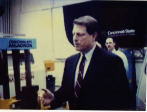 On February 26, 1996, Cincinnati State received a visit from Vice President Al Gore, who remarked that the cooperative education program could be a model for the rest of the country. School officials arranged for Vice President Gore to work on a CAD/CAM computer.