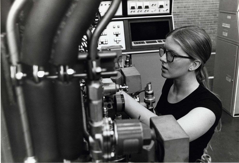 Also in 1977, the average earnings for 5 co-op terms was $4,000—more than enough at that time to pay for tuition, fees, and books. Many co-ops were able to purchase their own car with their co-op earnings. Pictured: Marianne Meier, CTC Engineering Co-op Student at Cincinnati Milacron, 1978
