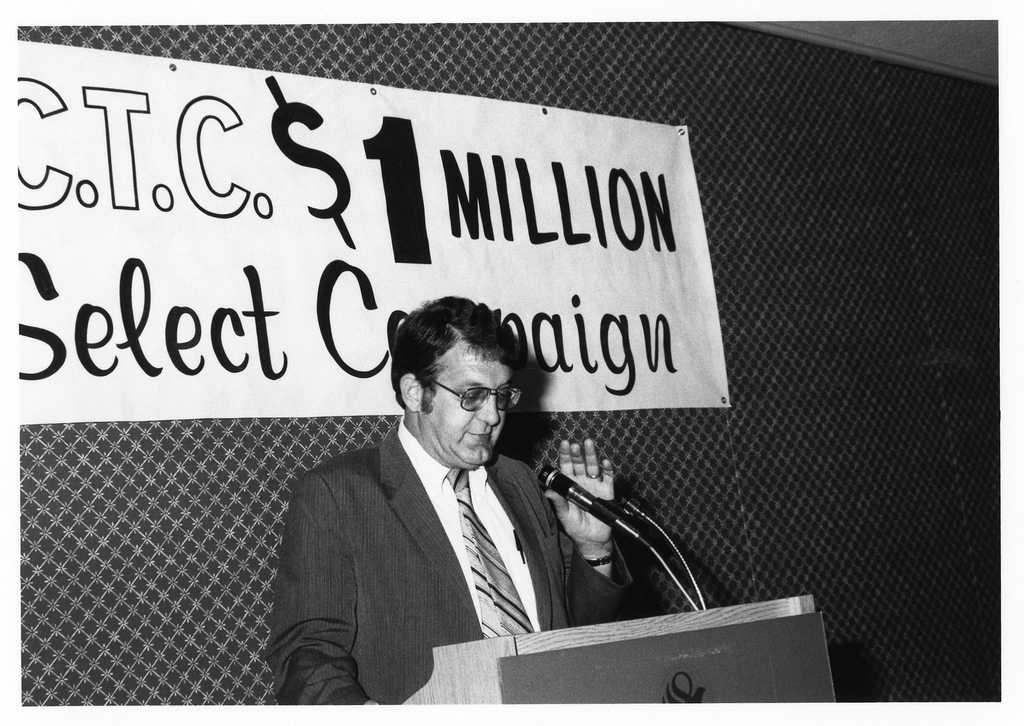Economic conditions impacted co-op registrations into the 1980s with a steady drop in the number of area co-op jobs. President Frederick Schlimm declared 1983-1984 “The Year of the Co-op” as a way to re-emphasize the importance of co-op to the mission of the college. Pictured: President Schlimm in 1982.