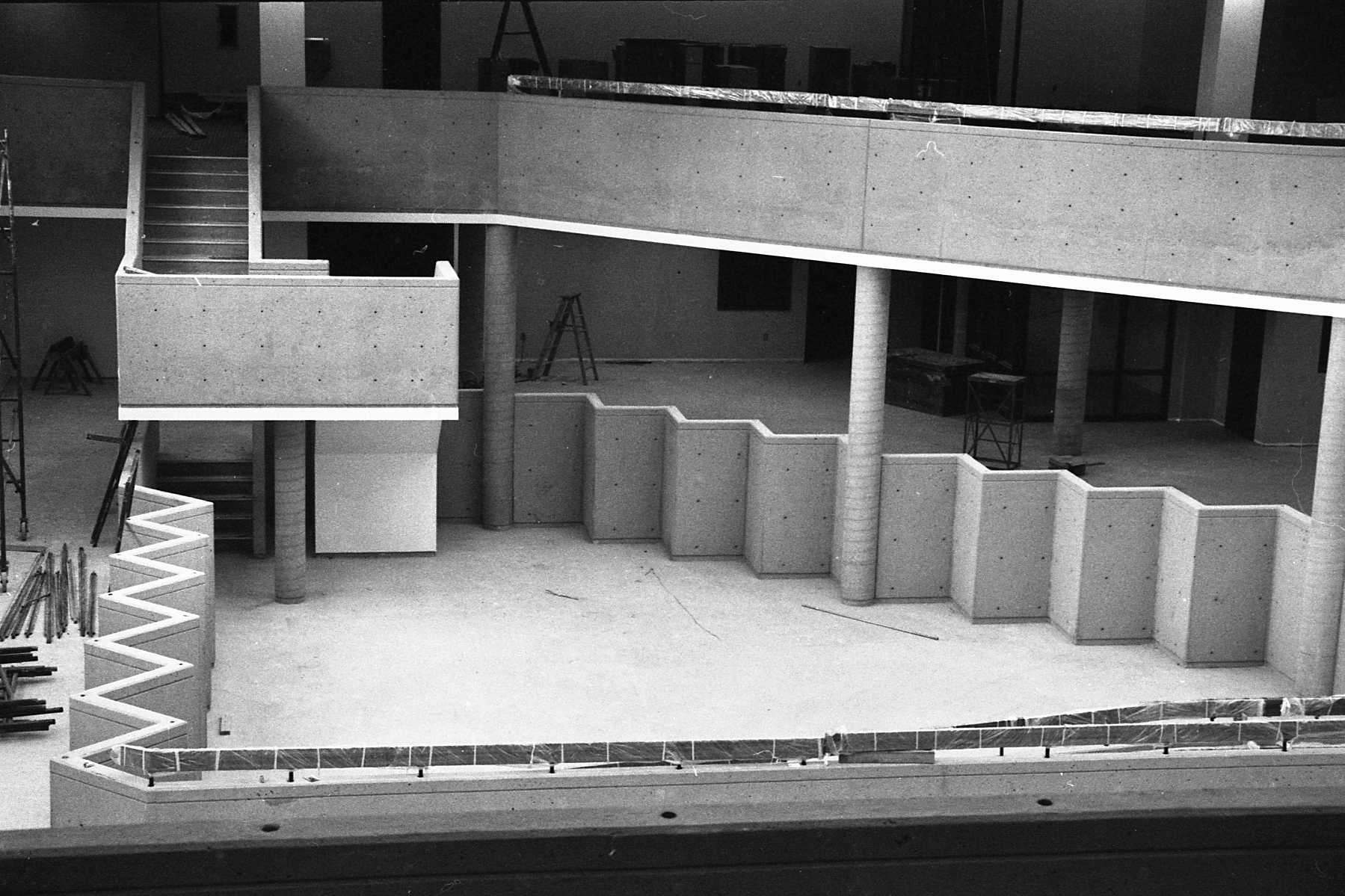 In the mid-1970s, as the college grew, so did the need for a larger library. Construction began to convert the former Courter auditorium into the Library Resources Center (LRC). This picture shows the library during construction.