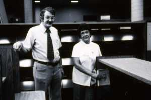 In 1995, the library joined OhioLINK, a consortium of college and university libraries in Ohio. The library’s catalog (BLINK) was computerized and searchable via the internet. In this picture, current Director of the Johnnie Mae Berry Library, Kathryn O’Gorman, displays information about OhioLINK.